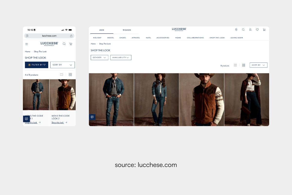 Lucchese keeps their look consistent on mobile and desktop, must-have in present times with most customers shopping on their phones.